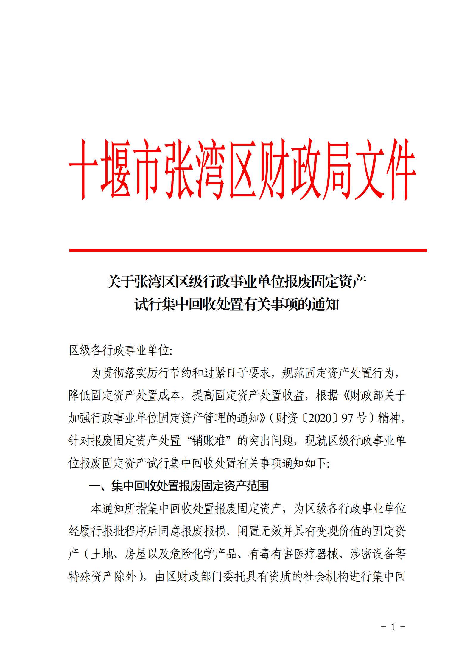 入圍張灣區(qū)區(qū)級行政事業(yè)單位報廢固定資產(chǎn) 試行集中回收處置機(jī)構(gòu)。