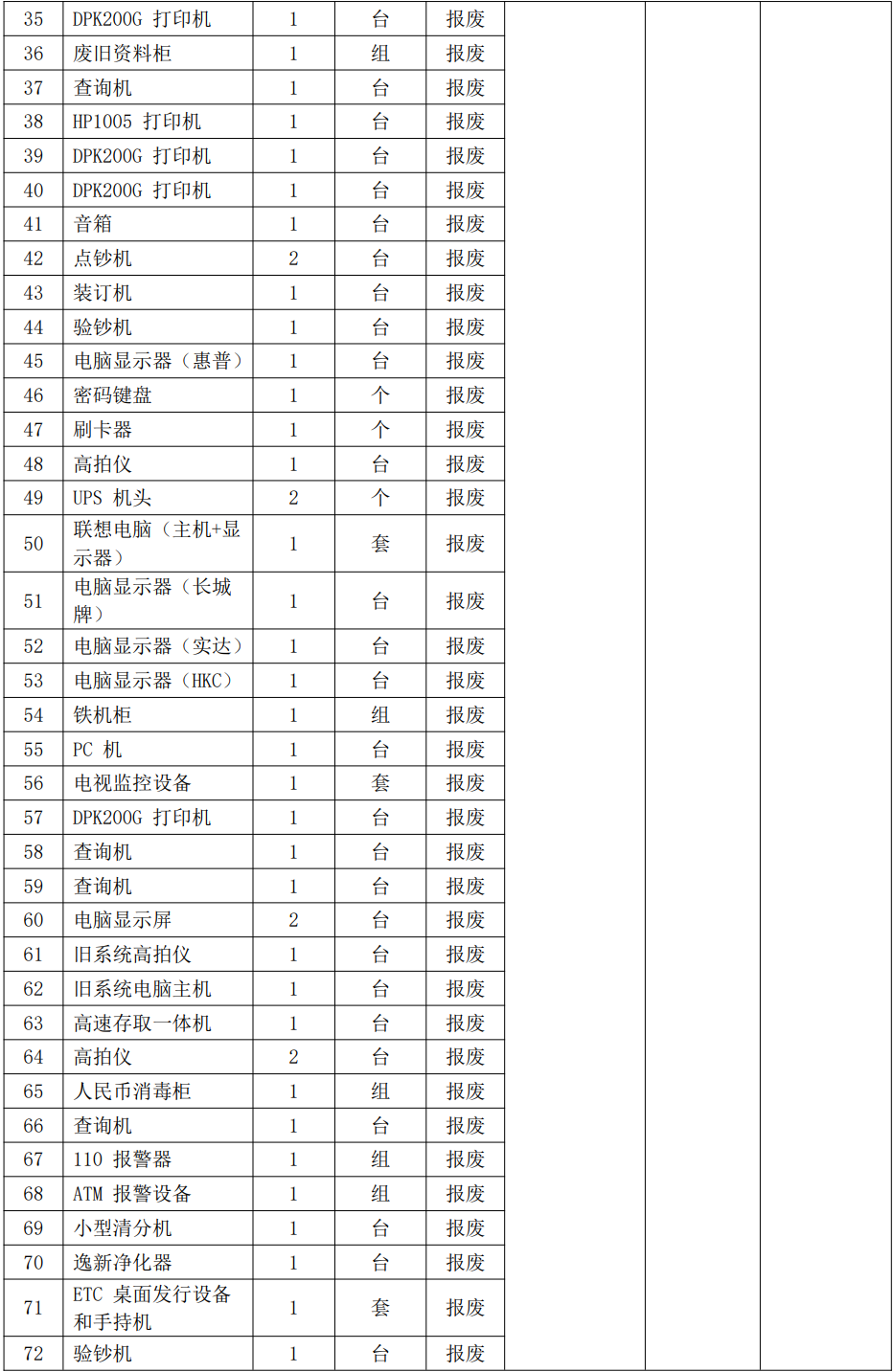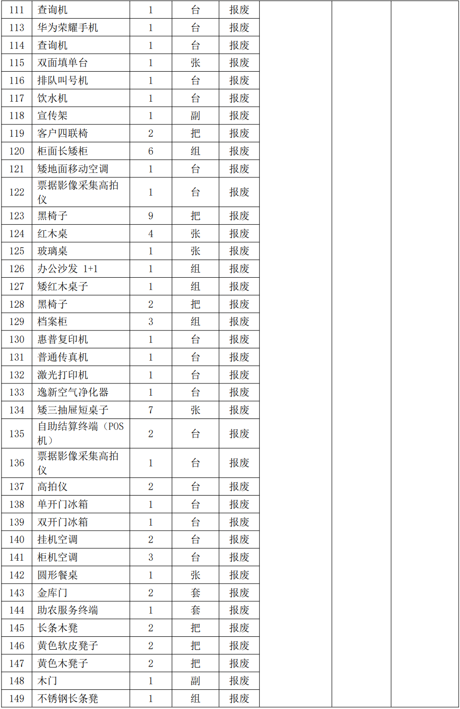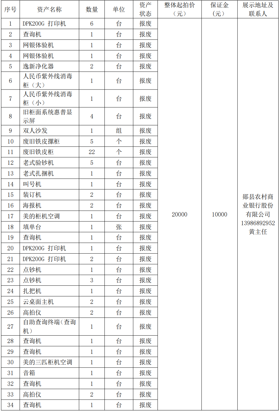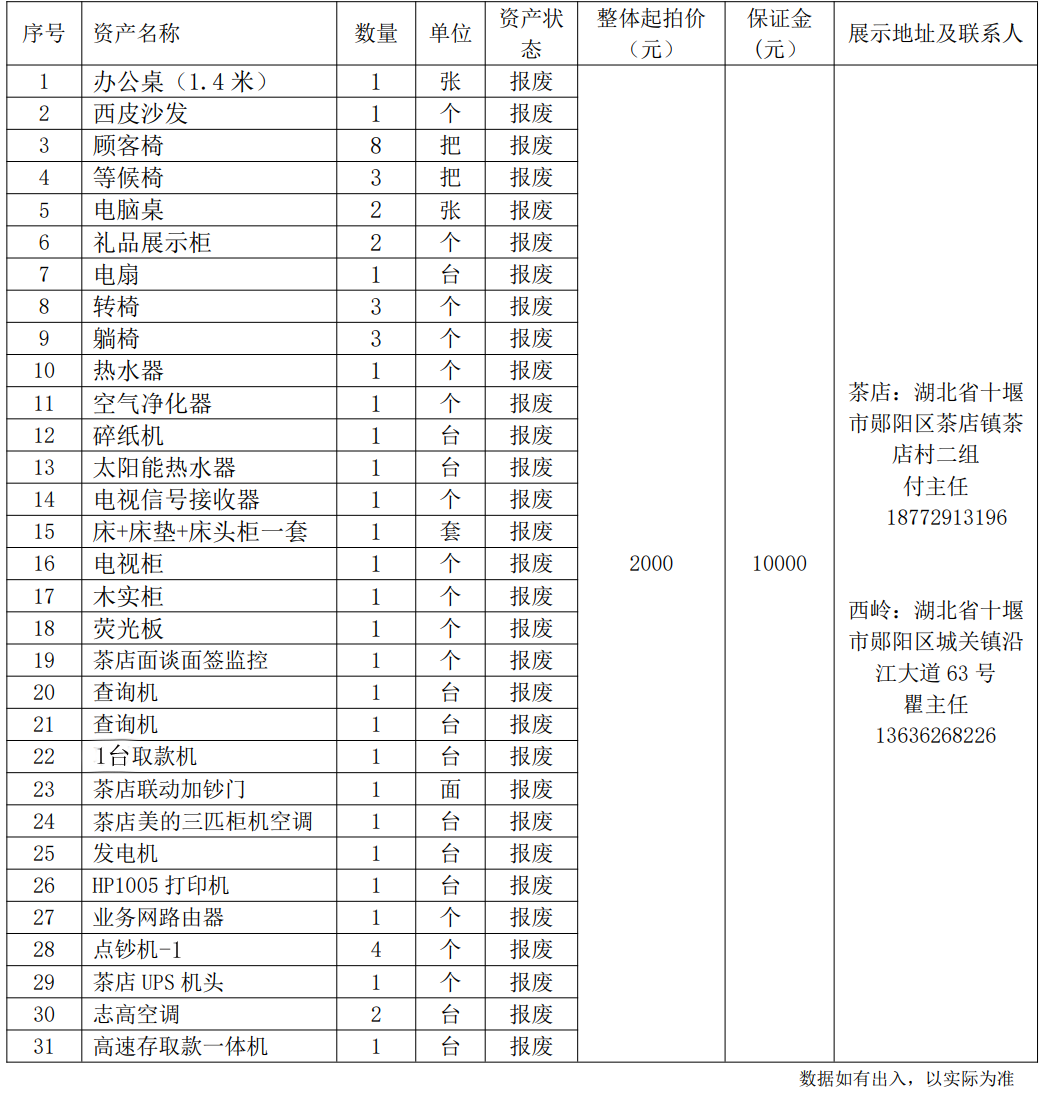 2.湖北省十堰市鄖縣農(nóng)村商業(yè)銀行股份有限公司報廢資產(chǎn):